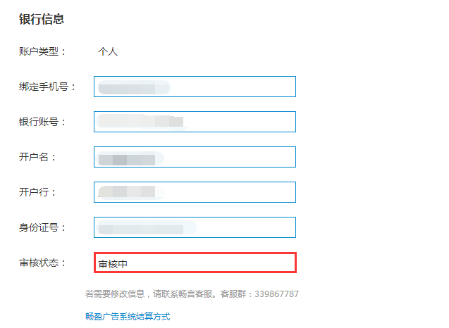 问:为什么我的银行信息一直显示审核中?广告结算的银行信息多久审核?